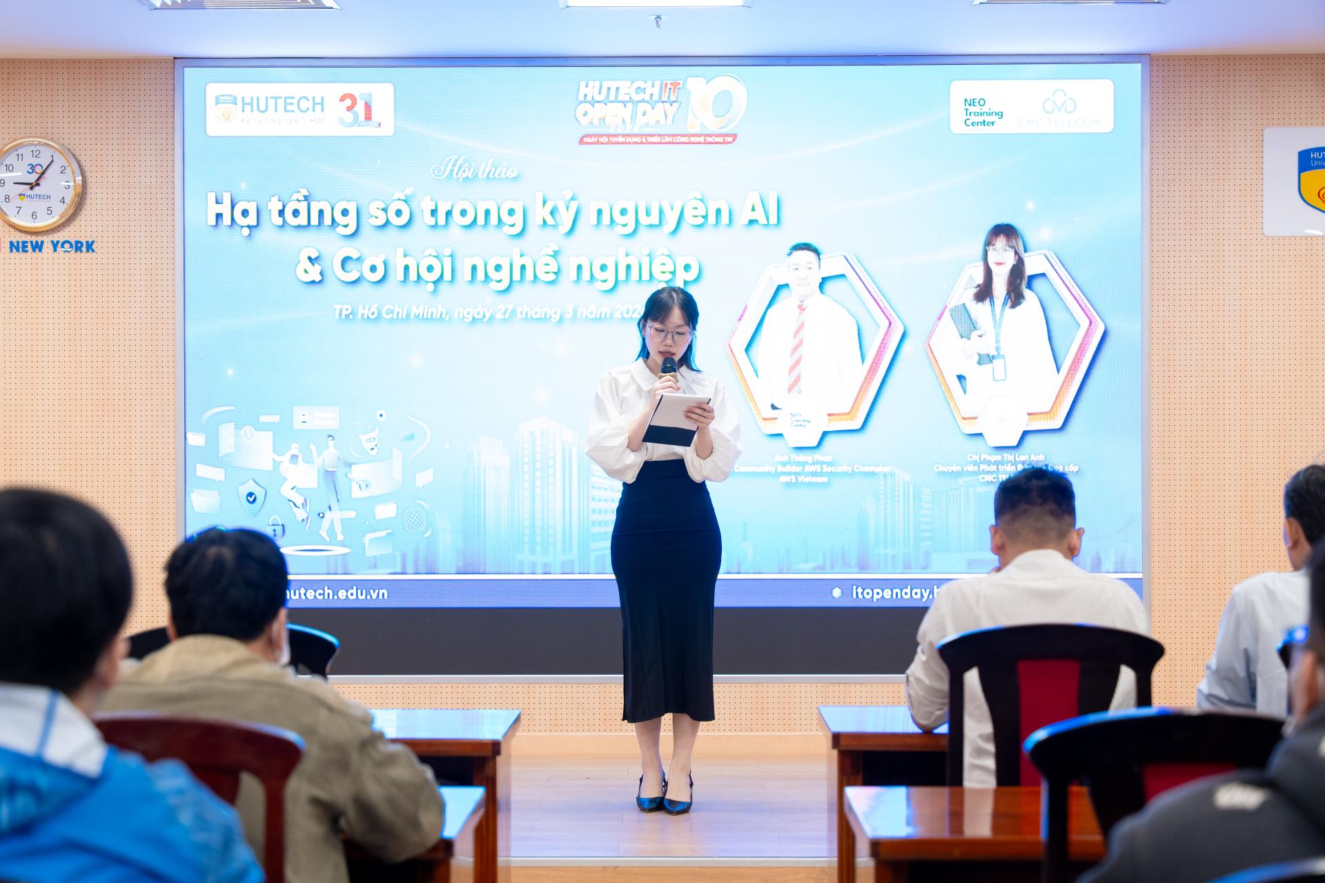 0868 255 799Ngày 27/03/2026 vừa qua, tại Trường Đại học Công nghệ TP.HCM (HUTECH), hội thảo với chủ đề “Định hướng nghề nghiệp & Kỹ năng chinh phục nhà tuyển dụng Công nghệ thông tin – Hạ tầng số trong kỷ nguyên AI & Cơ hội nghề nghiệp” đã diễn ra sôi nổi, thu hút đông đảo sinh viên tham dự.
